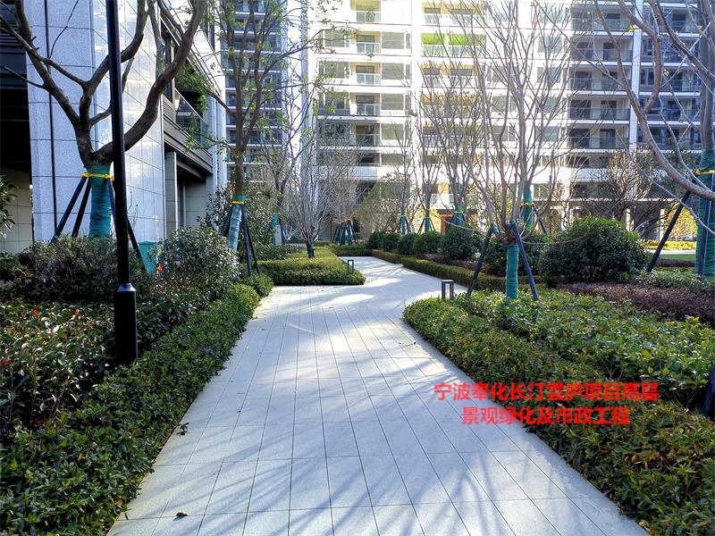 寧波奉化長汀雲(yún)廬項(xiàng)目高層景觀綠化及市政工程位于寧波市奉化區(qū)長汀村,是寧波市高端住宅小區(qū),該項(xiàng)目總景觀面積約50000平方米,綠地面積26708平方米,綠地占53.4%,合同造價3489.2898萬元,工程自2020年6月4日開工,于2020年9月28日竣工,該工程的建設(shè)單位為寧波奉化綠城浙宏房地產(chǎn)開發(fā)有限公司;設(shè)計(jì)單位為綠城衡宇環(huán)境設(shè)計(jì)有限公司;監(jiān)理單位為浙江工正工程管理有限公司;施工單位為浙江三葉園林建設(shè)有限公司。2020年度被浙江省風(fēng)景園林學(xué)會評為“浙江省園林綠化工程安全生產(chǎn)文明標(biāo)準(zhǔn)化工地”。