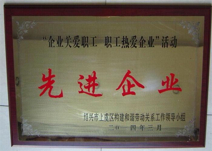 •      去年以來,根據(jù)上虞區(qū)《關(guān)于開展“雙愛”活動先進(jìn)企業(yè)、先進(jìn)工作和優(yōu)秀職工評選活動的通知》文件,緊緊圍繞“六有”要求,通過組織發(fā)動、全面推進(jìn)、督查指導(dǎo)、考核評選四個階段及有部門和單位專項(xiàng)督查測評情況,公司榮獲“企業(yè)關(guān)愛職工、職工熱愛企業(yè)”先進(jìn)企業(yè)榮譽(yù)稱號。