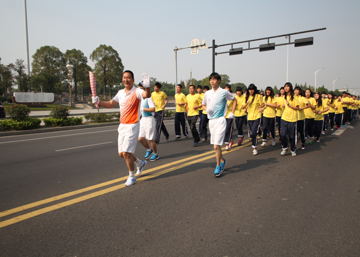 - 10月13日,上午9點,浙江省第十五屆運動會火炬?zhèn)鬟f儀式在上虞區(qū)市民中心體育場舉行,20名火炬手、40名護跑手、120名隨跑群眾以飽滿的精神,激昂的熱情見證了省運動會序幕拉開。來自上虞區(qū)各界的20名火炬手開始接力,公司董事長金玉兔擔任今天火炬?zhèn)鬟f的第12棒火炬手,9點20分左右,三葉園林董事長金玉兔身穿橙白黃相間的火炬手服裝,英姿颯爽的開始了火炬?zhèn)鬟f,在兩名護跑手和120名隨跑人員的簇擁下,手握“虹”火炬向觀眾致意,伴隨著現(xiàn)場眾多觀眾的吶喊助威,高擎“虹”火炬,成功完成了火炬?zhèn)鬟f。
