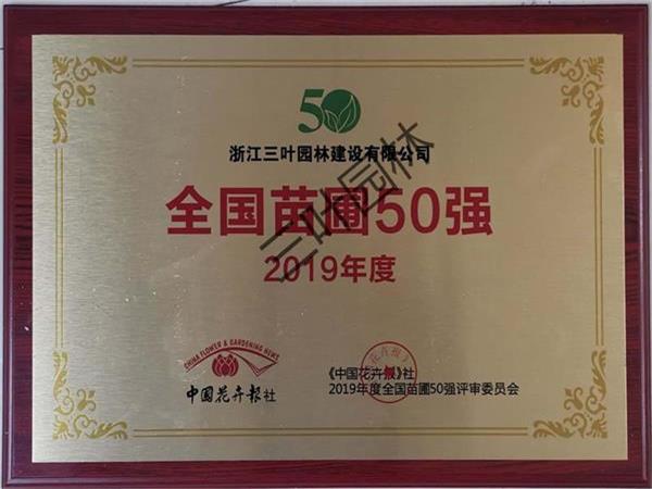- 喜訊三葉園林榮獲"全國苗圃50強(qiáng)"